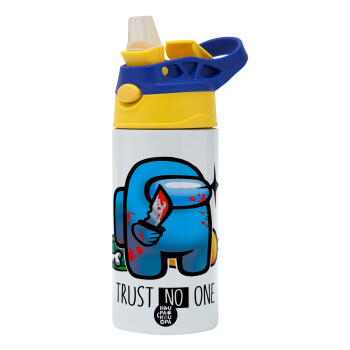 Among Trust no one, Children's hot water bottle, stainless steel, with safety straw, green, blue (360ml) BPA FREE