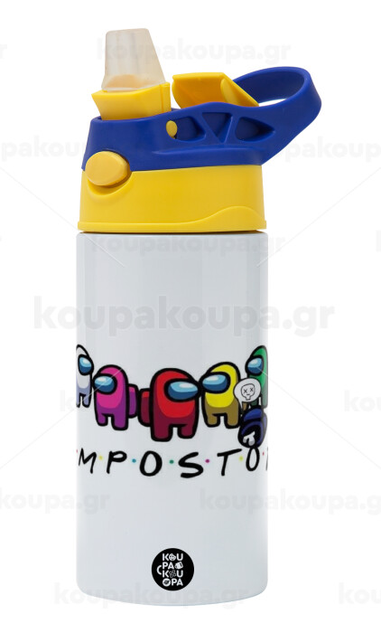 Among US impostor, Children's hot water bottle, stainless steel, with safety straw, green, blue (360ml) BPA FREE