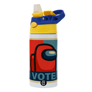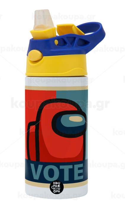 Among US VOTE, Children's hot water bottle, stainless steel, with safety straw, green, blue (360ml) BPA FREE
