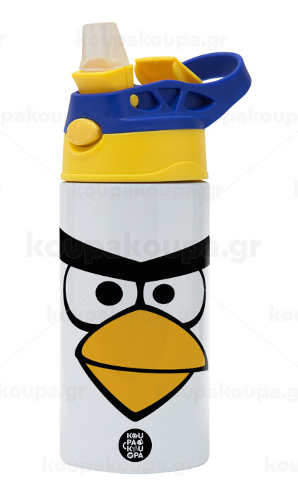 Angry birds eyes, Children's hot water bottle, stainless steel, with safety straw, green, blue (360ml) BPA FREE