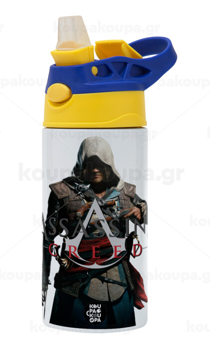 Assassin's Creed, Children's hot water bottle, stainless steel, with safety straw, green, blue (360ml) BPA FREE