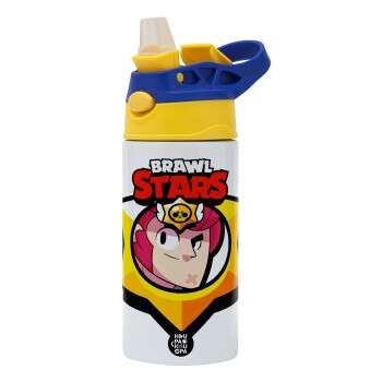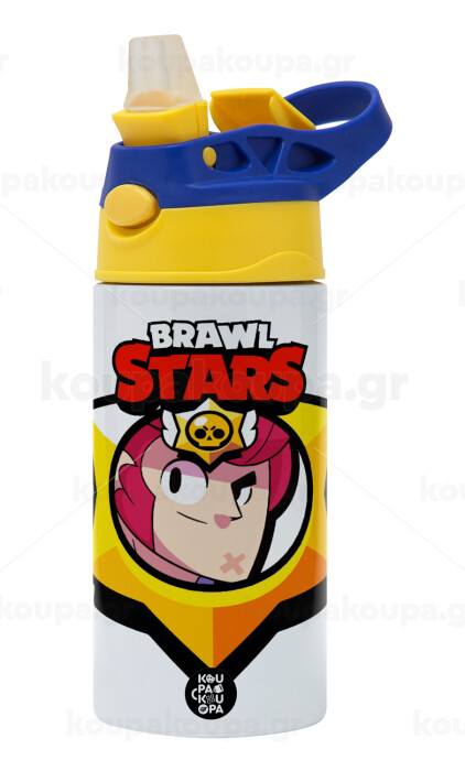 Brawl Stars Colt, Children's hot water bottle, stainless steel, with safety straw, green, blue (360ml) BPA FREE