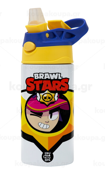 Brawl Stars Fang, Children's hot water bottle, stainless steel, with safety straw, green, blue (360ml) BPA FREE