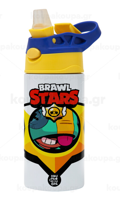 Brawl Stars Leon, Children's hot water bottle, stainless steel, with safety straw, green, blue (360ml) BPA FREE