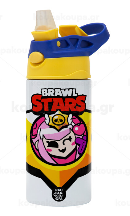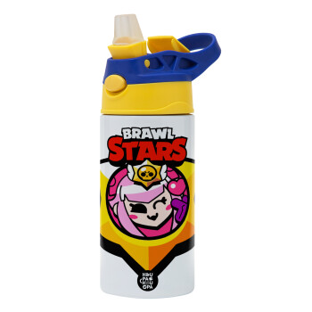 Brawl Stars Melodie, Children's hot water bottle, stainless steel, with safety straw, green, blue (360ml) BPA FREE