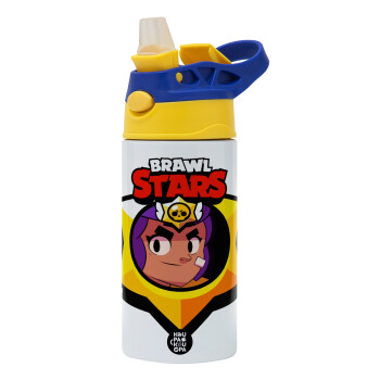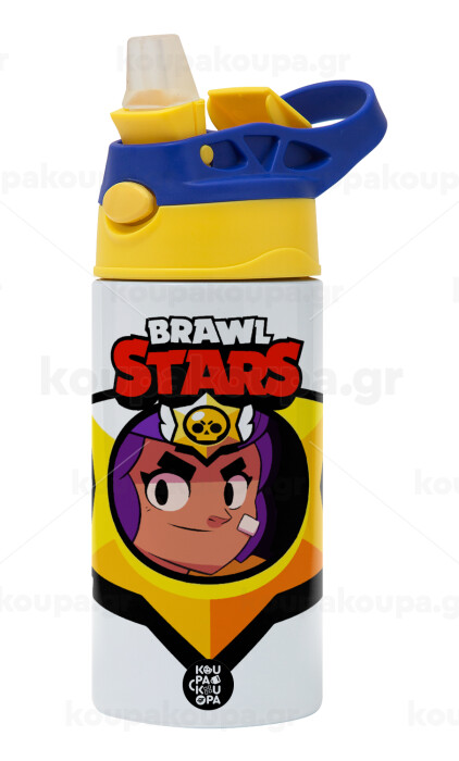 Brawl Stars Shelly, Children's hot water bottle, stainless steel, with safety straw, green, blue (360ml) BPA FREE