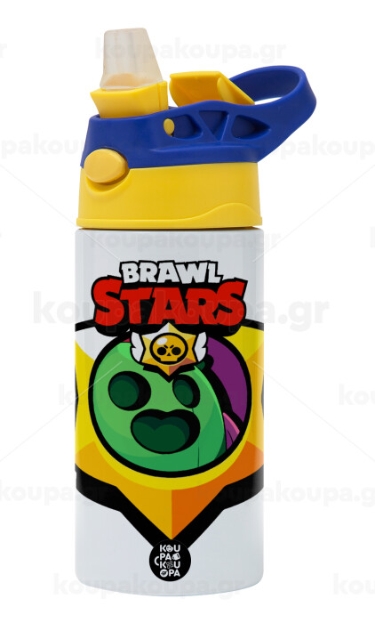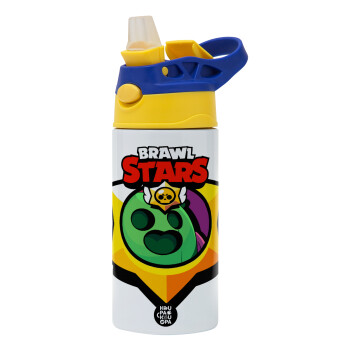 Brawl Stars Spike, Children's hot water bottle, stainless steel, with safety straw, green, blue (360ml) BPA FREE
