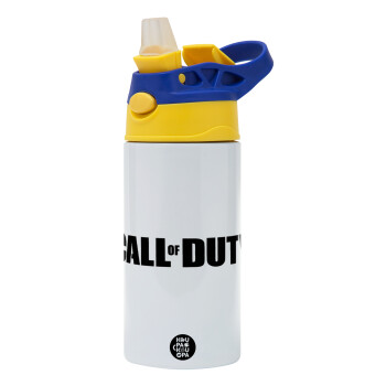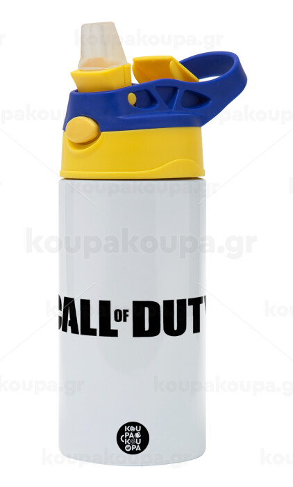 Call of Duty, Children's hot water bottle, stainless steel, with safety straw, green, blue (360ml) BPA FREE