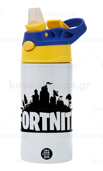 Fortnite, Children's hot water bottle, stainless steel, with safety straw, green, blue (360ml) BPA FREE
