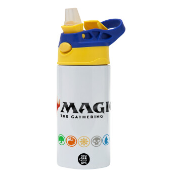 Magic the Gathering, Children's hot water bottle, stainless steel, with safety straw, green, blue (360ml) BPA FREE