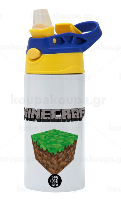 Minecraft dirt, Children's hot water bottle, stainless steel, with safety straw, green, blue (360ml) BPA FREE