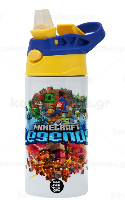 Minecraft legends, Children's hot water bottle, stainless steel, with safety straw, green, blue (360ml) BPA FREE