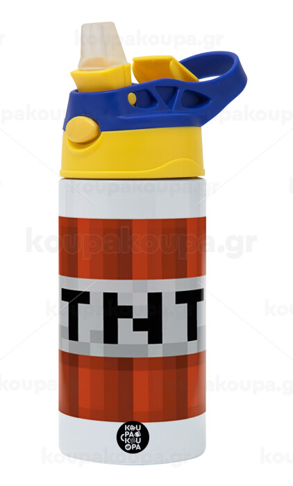 Minecraft TNT, Children's hot water bottle, stainless steel, with safety straw, green, blue (360ml) BPA FREE