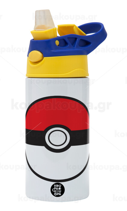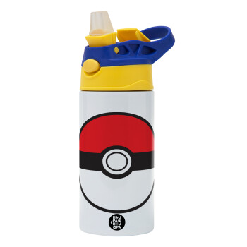 Pokemon ball, Children's hot water bottle, stainless steel, with safety straw, green, blue (360ml) BPA FREE