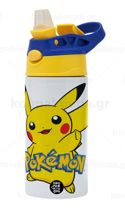 Pokemon pikachu, Children's hot water bottle, stainless steel, with safety straw, green, blue (360ml) BPA FREE