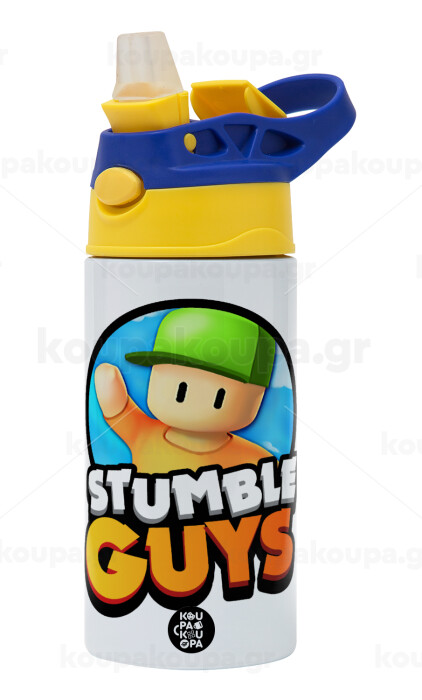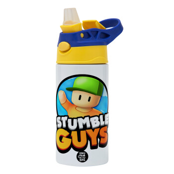 Stumble Guys, Children's hot water bottle, stainless steel, with safety straw, green, blue (360ml) BPA FREE