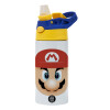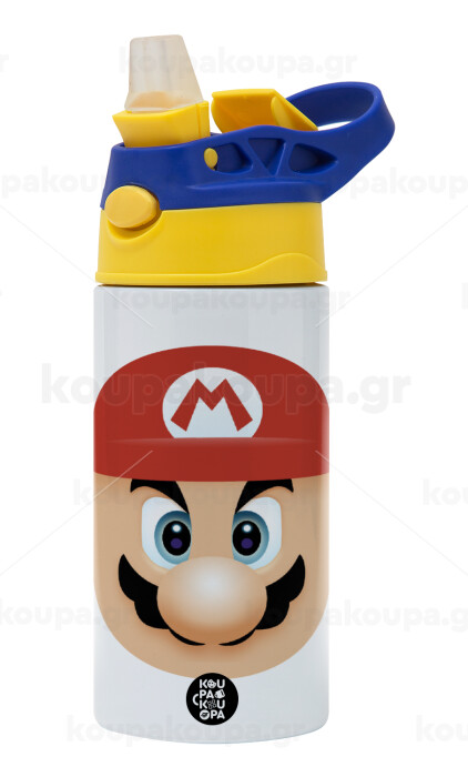 Super mario flat, Children's hot water bottle, stainless steel, with safety straw, green, blue (360ml) BPA FREE