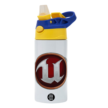 Unreal, Children's hot water bottle, stainless steel, with safety straw, green, blue (360ml) BPA FREE