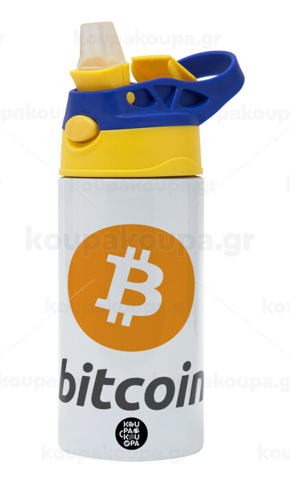 Bitcoin, Children's hot water bottle, stainless steel, with safety straw, green, blue (360ml) BPA FREE