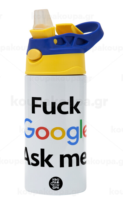 Fuck Google, Ask me!, Children's hot water bottle, stainless steel, with safety straw, green, blue (360ml) BPA FREE