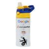 Google + Stack overflow + Coffee, Children's hot water bottle, stainless steel, with safety straw, green, blue (360ml) BPA FREE