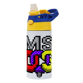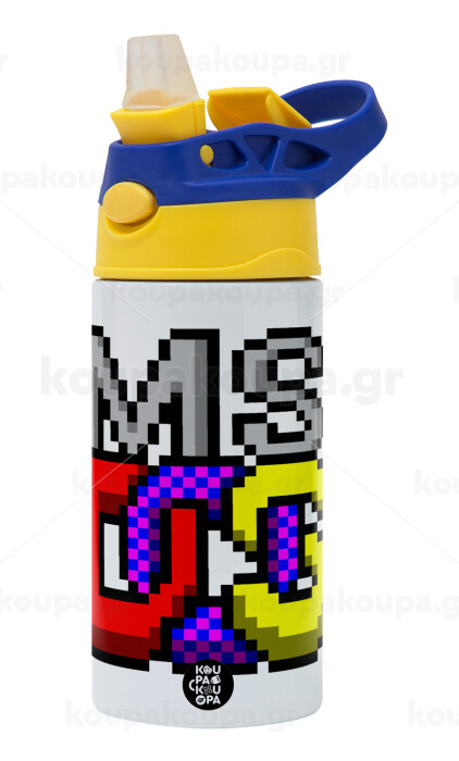 MsDos, Children's hot water bottle, stainless steel, with safety straw, green, blue (360ml) BPA FREE