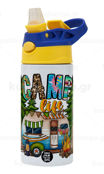 Camp Life, Children's hot water bottle, stainless steel, with safety straw, green, blue (360ml) BPA FREE