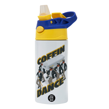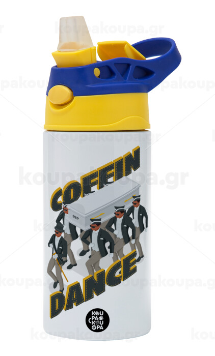 Coffin Dance!, Children's hot water bottle, stainless steel, with safety straw, green, blue (360ml) BPA FREE