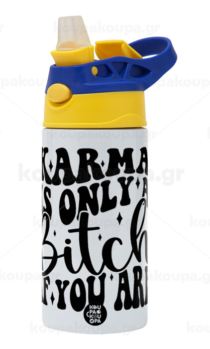 Karma is Only A Bitch if You Are, Children's hot water bottle, stainless steel, with safety straw, green, blue (360ml) BPA FREE