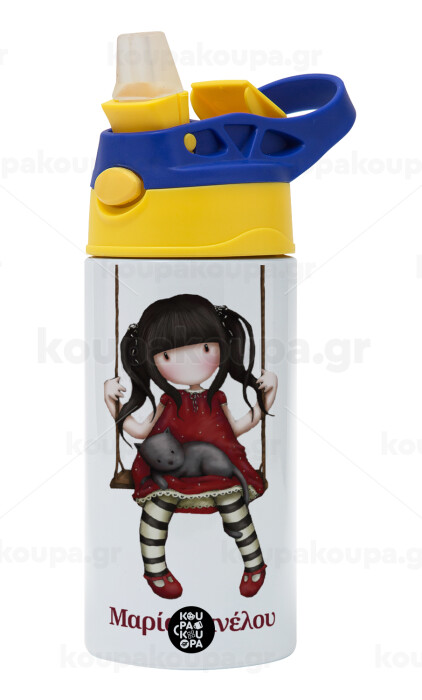 Santoro, Children's hot water bottle, stainless steel, with safety straw, green, blue (360ml) BPA FREE
