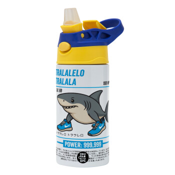 Tralalero Tralala, Children's hot water bottle, stainless steel, with safety straw, green, blue (360ml) BPA FREE