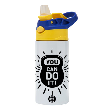 You can do it, Children's hot water bottle, stainless steel, with safety straw, green, blue (360ml) BPA FREE