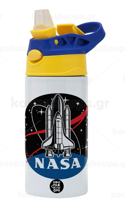 NASA Badge, Children's hot water bottle, stainless steel, with safety straw, green, blue (360ml) BPA FREE