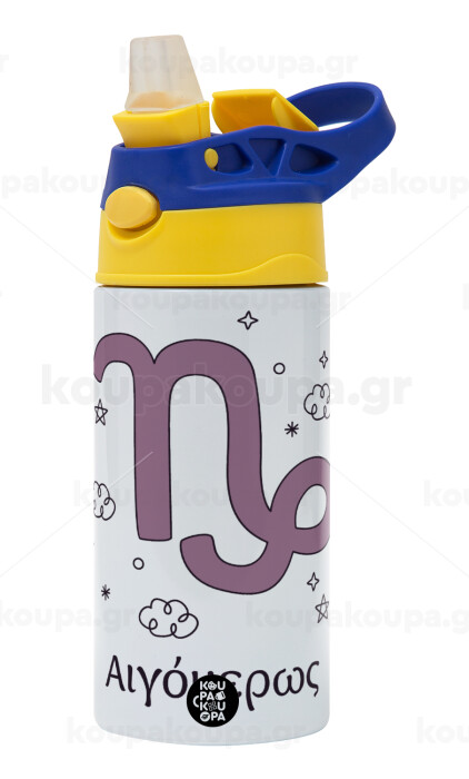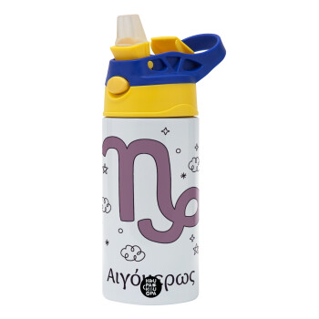 Ζώδια Αιγόκερως, Children's hot water bottle, stainless steel, with safety straw, green, blue (360ml) BPA FREE