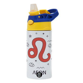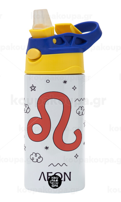 Ζώδια Λέων, Children's hot water bottle, stainless steel, with safety straw, green, blue (360ml) BPA FREE