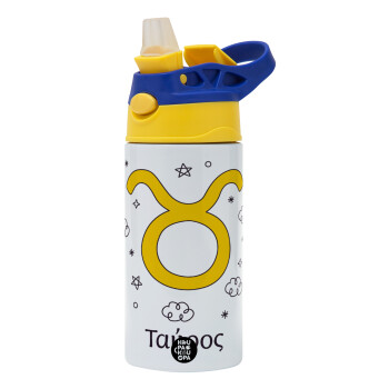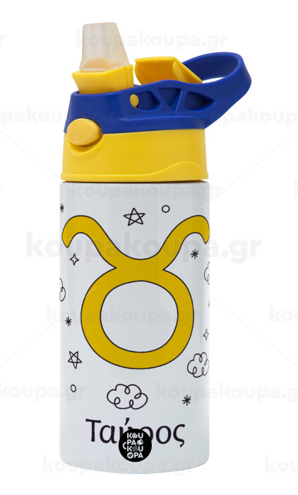Ζώδια Ταύρος, Children's hot water bottle, stainless steel, with safety straw, green, blue (360ml) BPA FREE