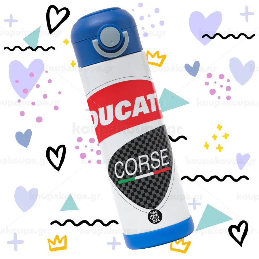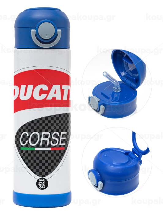 Ducati, Children's hot water bottle, stainless steel, with safety straw, BLUE (500ml)
