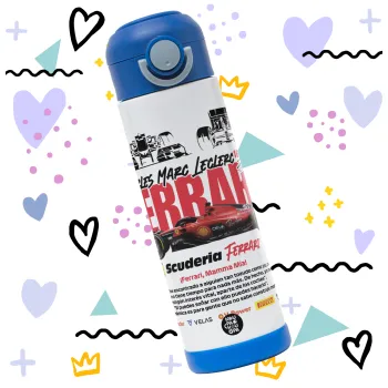 F1 Ferrari, Children's hot water bottle, stainless steel, with safety straw, BLUE (500ml)
