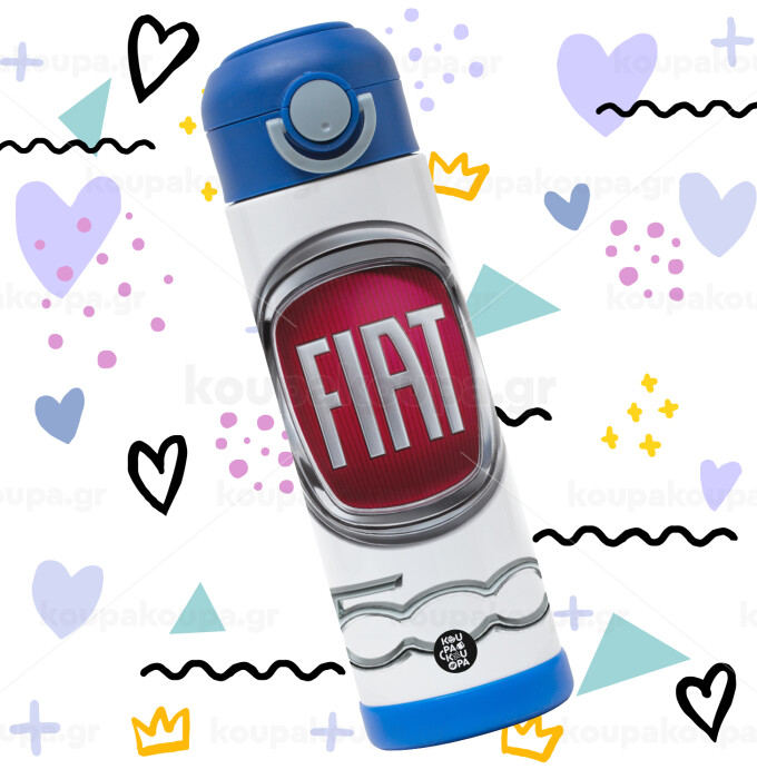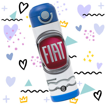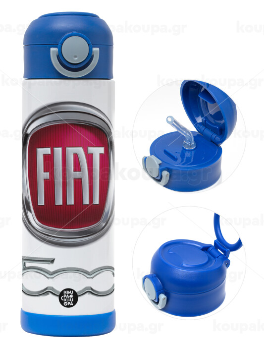 FIAT 500, Children's hot water bottle, stainless steel, with safety straw, BLUE (500ml)