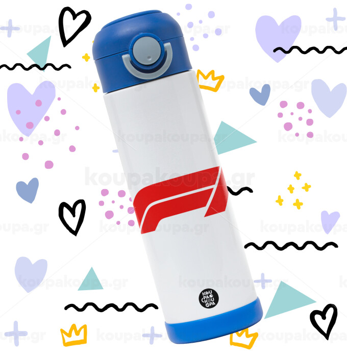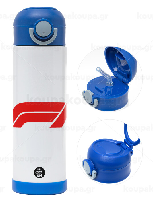 Formula 1, Children's hot water bottle, stainless steel, with safety straw, BLUE (500ml)