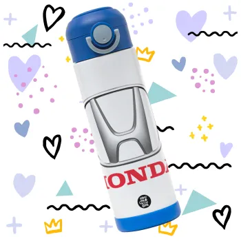 HONDA, Children's hot water bottle, stainless steel, with safety straw, BLUE (500ml)