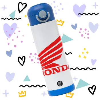 Honda, Children's hot water bottle, stainless steel, with safety straw, BLUE (500ml)