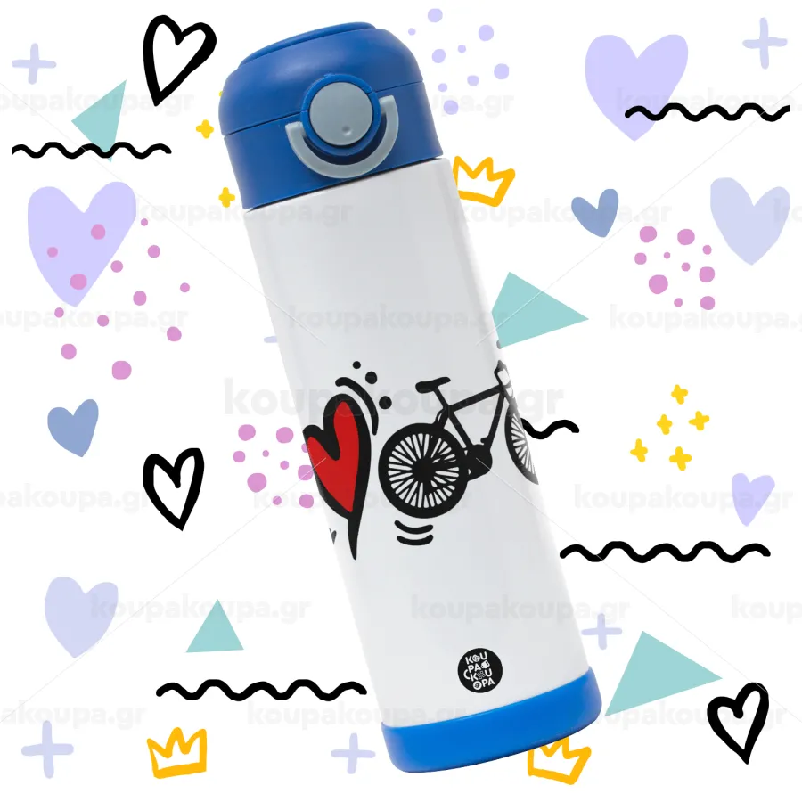I love my bike, Children's hot water bottle, stainless steel, with safety straw, BLUE (500ml)