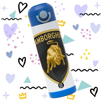 Lamborghini, Children's hot water bottle, stainless steel, with safety straw, BLUE (500ml)