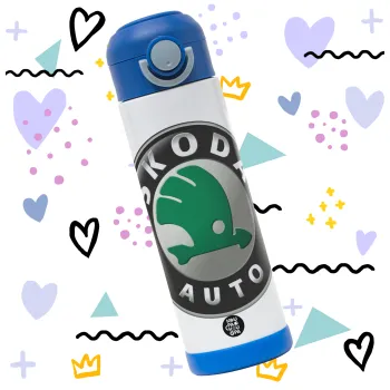 SKODA, Children's hot water bottle, stainless steel, with safety straw, BLUE (500ml)