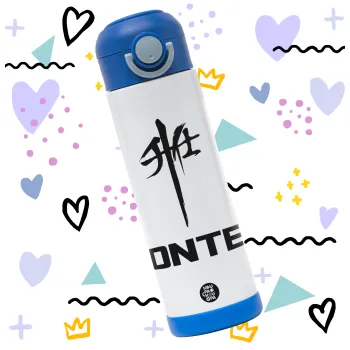 ZONTES, Children's hot water bottle, stainless steel, with safety straw, BLUE (500ml)