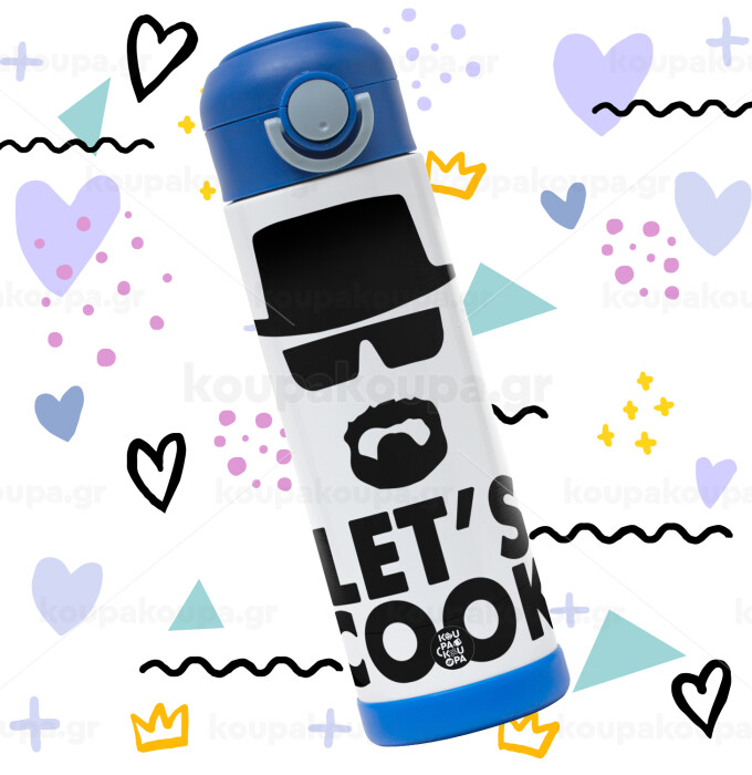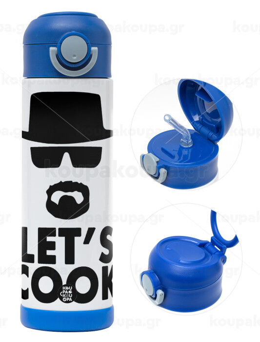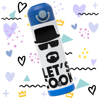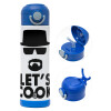 Let's cook, Children's hot water bottle, stainless steel, with safety straw, BLUE (500ml)