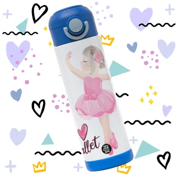 I Love Ballet, Children's hot water bottle, stainless steel, with safety straw, BLUE (500ml)