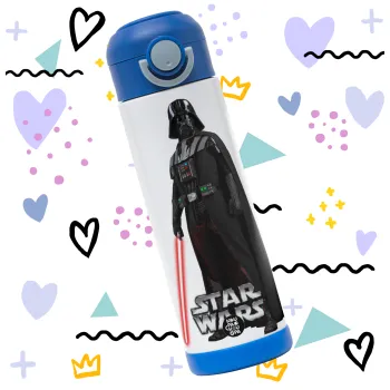 Darth vader, Children's hot water bottle, stainless steel, with safety straw, BLUE (500ml)