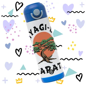 Miyagi-do karate, Children's hot water bottle, stainless steel, with safety straw, BLUE (500ml)